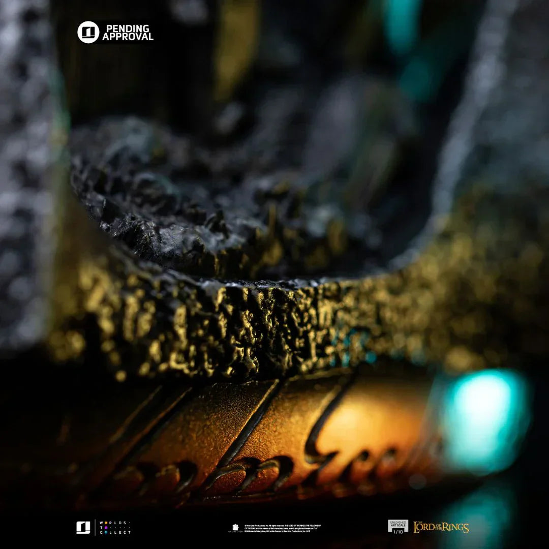 Our talented sculptors and painters at Prime 1 Studio may not be Dwarven Craftsmen, but they have done their absolute best to fill this jaw-dropping statue with all the fantastic detail that this 22-inch-tall Gimli deserves. The main goal with the execution of Gimli’s development was the attention to a realistic and faithful interpretation of his design. From his helmet, the Dwarven scrollwork, the leather texture, and the metal battle damage are all spot-on. Our artisans have managed to replicate the woolen texture of his Elven cloak in resin, no less. Every inch is festooned with filigree, chainmail work, and leather embossing. It is amazing that one can tell what material each of his pieces of clothing is supposed to be made by how our artists have rendered them.